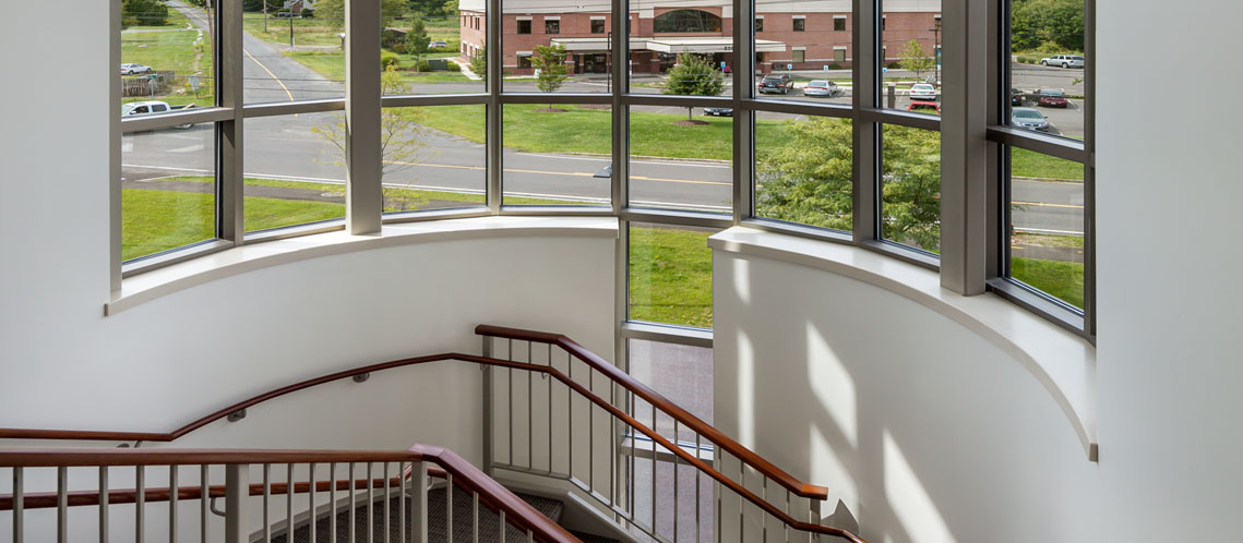 The three-story office building was the first phase of Easthampton Savings Bank’s modernization program. The facility features a branch bank, office and meeting space, a fit-out basement level and an unfinished third floor for future expansion.