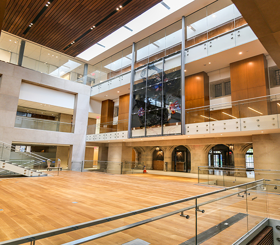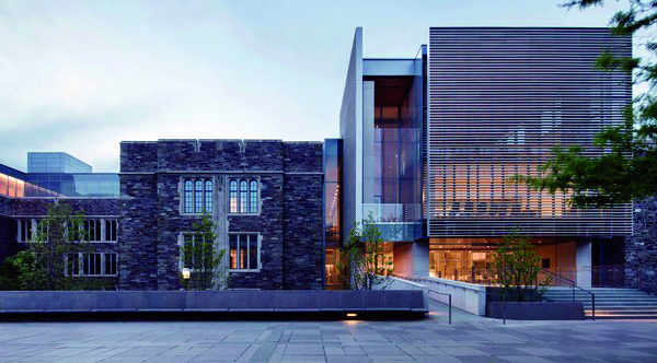 The move is designed to consolidate some academic and administrative areas that are spread across the University. The building includes new classrooms, offices and meeting spaces, and features communal spaces. One atrium is located just beyond the Washington Road entrance of the building. Another atrium, on the south side of the building, encloses the existing stone façade courtyard and connects to Scudder Plaza and the other social science buildings in the neighborhood.